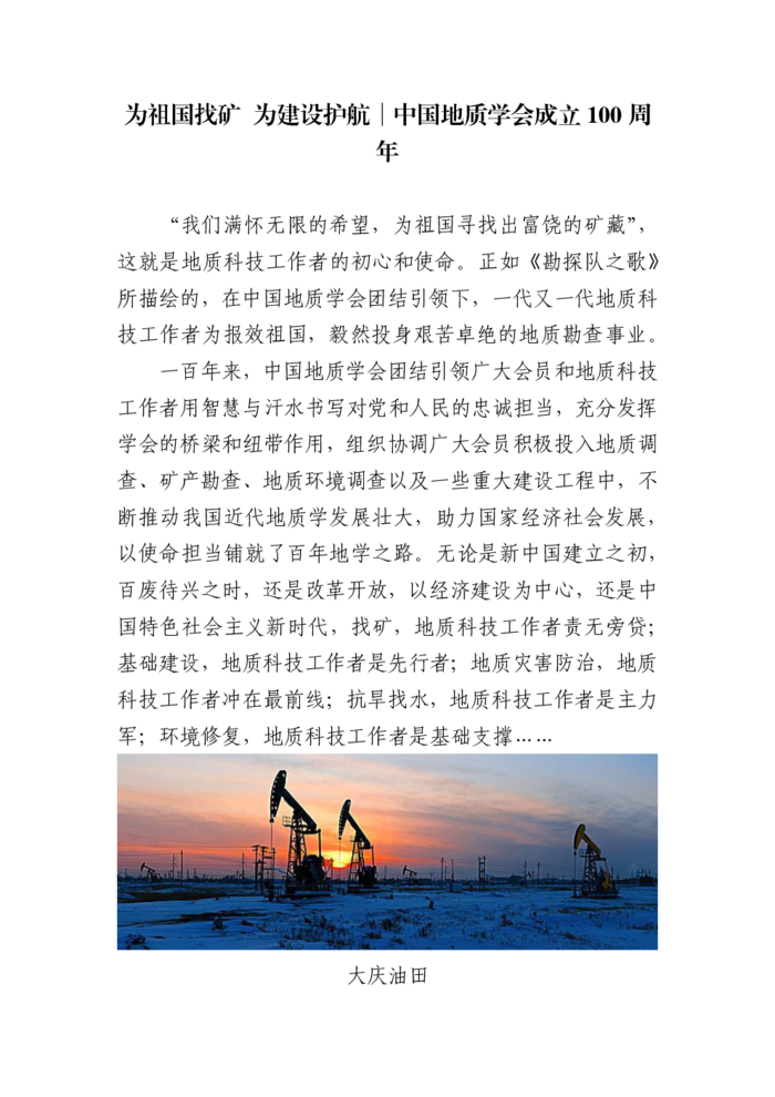 为祖国找矿为建设护航︱中国地质学会成立100周年