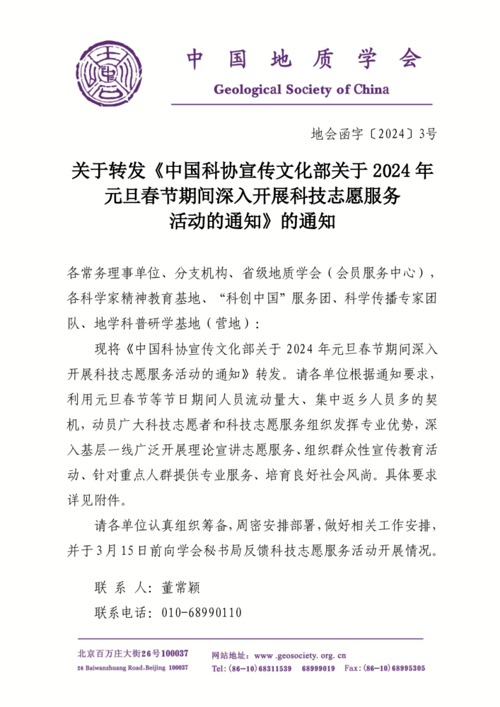 关于转发《中国科协宣传文化部关于2024年元旦春节期间深入开展科技志愿服务活动的通知》的通知